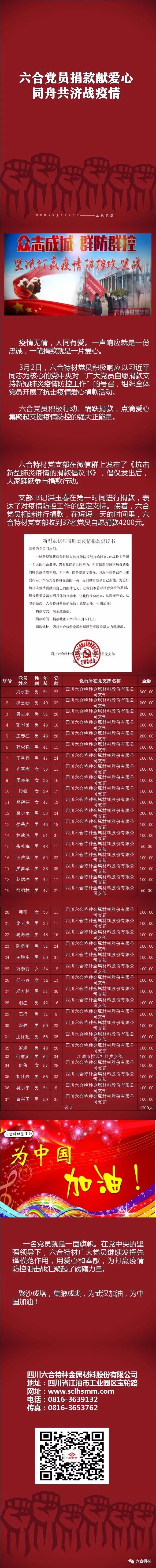 六合党员捐款献爱心,同舟共济战疫情。
