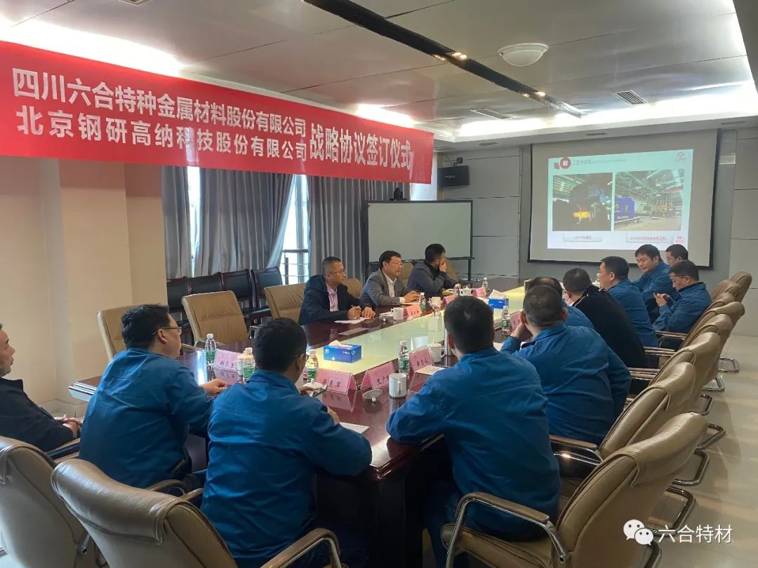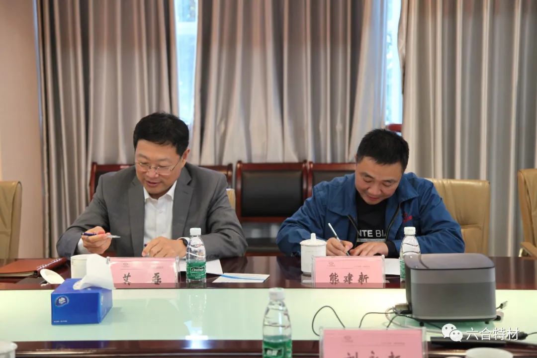 协议签署前,双方进行了会议座谈。中国钢研集团董事会秘书、钢研高纳董事长、党委书记艾磊,钢研高纳科技发展部、重点试验室主任毕中南,钢研高纳市场服务部高级专员蒋建新,437437必赢国际网址董事长熊建新,副董事长罗明,董事长助理刘永新等领导参与座谈。