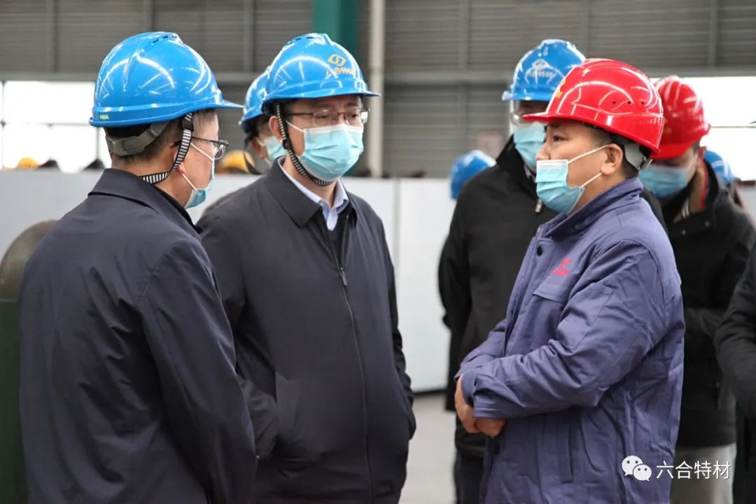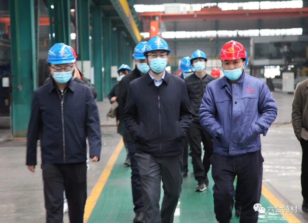 黄朝阳一行先后走进437437必赢国际网址快锻车间和连轧车间,与六合董事长熊建新深入交流,详细了解了企业在生产经营、研发能力、节能环保等方面的具体情况,关切地询问并了解六合在发展中遇到的困难和问题。