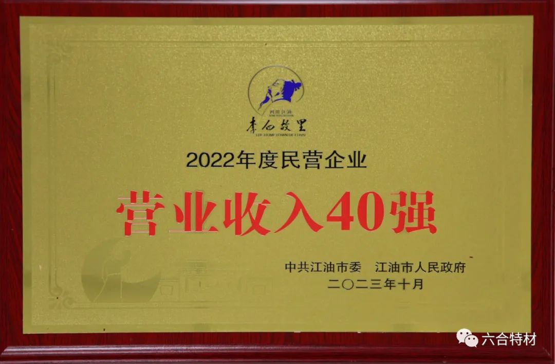 江油市2022年度民营企业营业收入40强企业