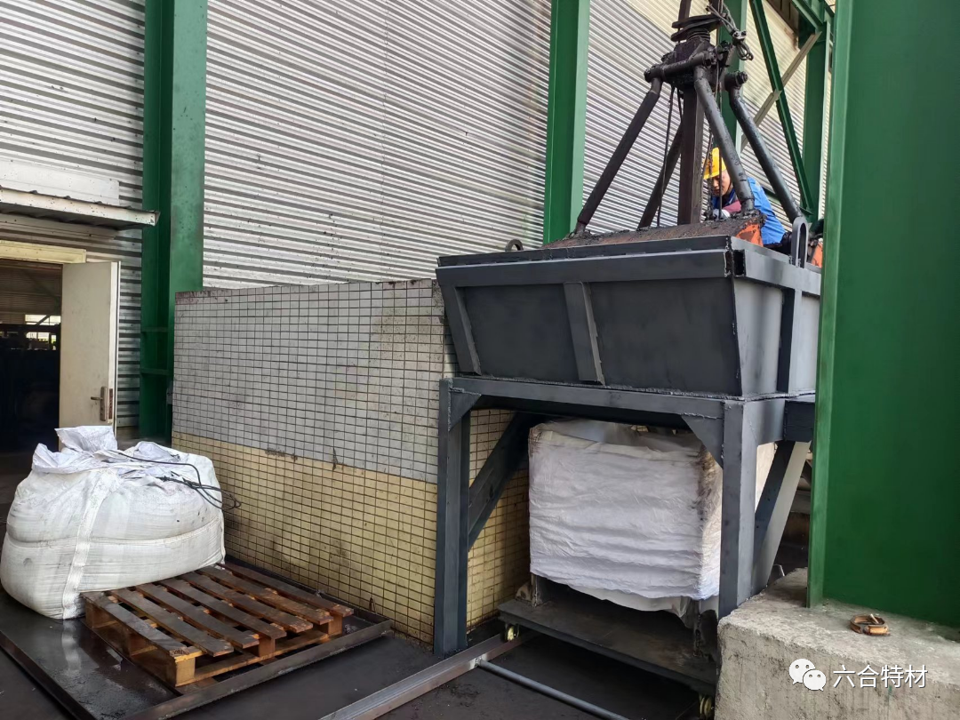 10月7日至20日期间,公司轧机从班组抽出会电焊的2人对装渣漏斗进行焊制,他们一边设计、一边制作、一边修改,通过近半个月的时间把装渣漏斗、安全防护架及装渣转运小车制作完成,10月19日安装到浊水池旁并进行试装,泥渣装袋情况良好,基本解决装袋问题,后续将袋装泥转运到10#厂房待虑水后处理。
