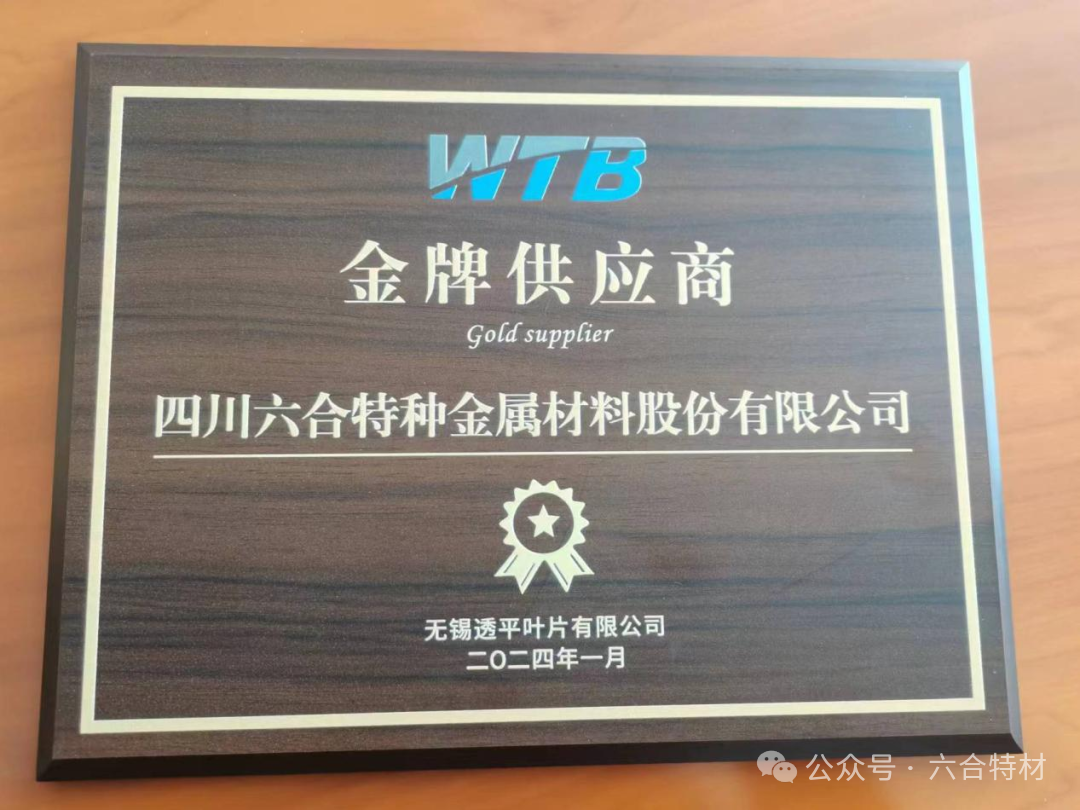 437437必赢国际网址荣获无锡透平叶片有限公司“金牌供应商”