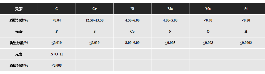 00Cr13Co9Ni5Mo5 is a cast martensitic aging stainless steel with excellent performance, possessing both the corrosion resistance of stainless steel and also the strength and toughness comparable to 18Ni martensitic aging steels. This steel possesses good strength-toughness, corrosion-resistance and oxidation-resistance at high temperature, and good plasticity and toughness at low temperature.