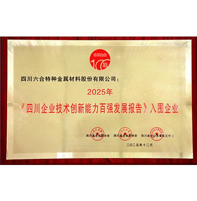 Shortlisted Enterprise for 2025 Top 100 Sichuan Enterprises in Technological Innovation Capability