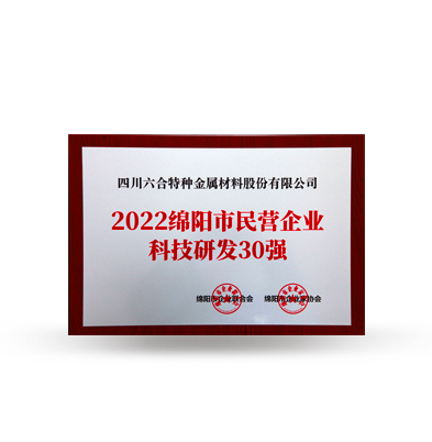 2022 Top 30 Mianyang Private Enterprises in Scientific and Technological R&D